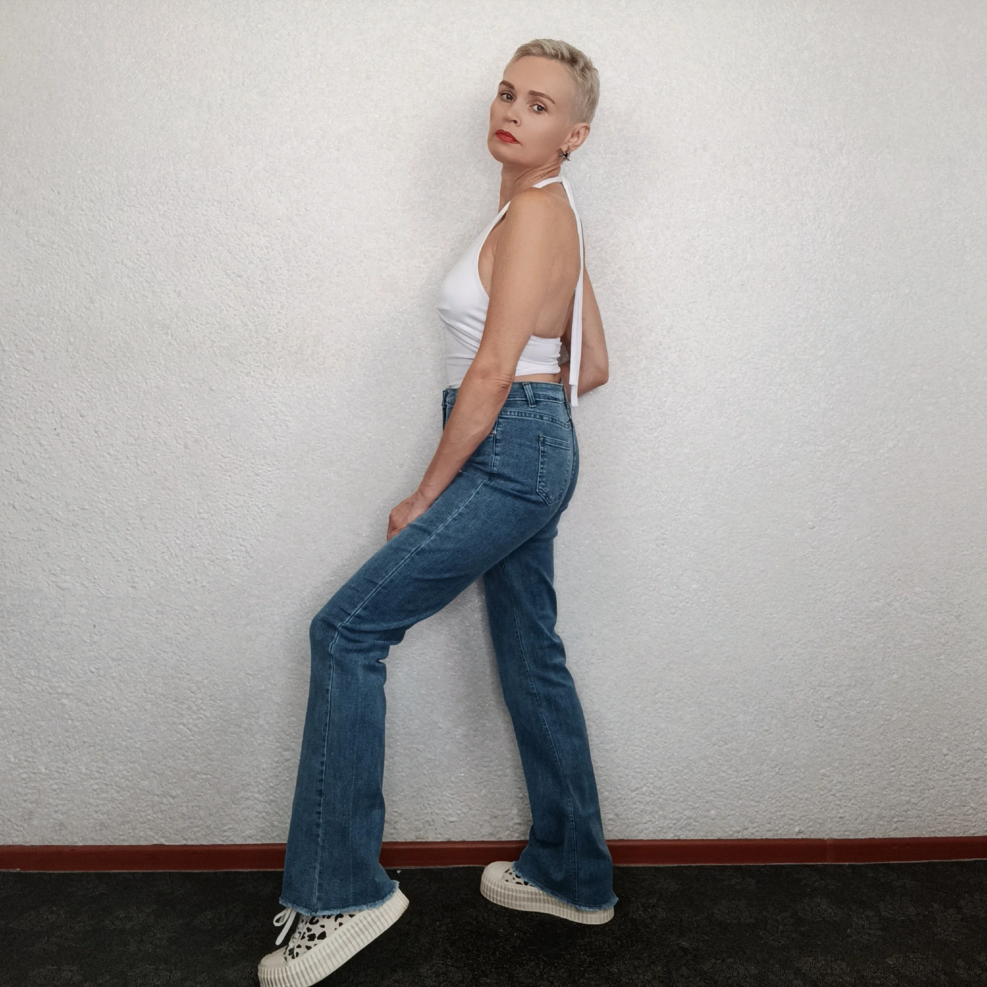 Excellent jeans from BIVIGAOS. I liked the fit; it's high-waisted. Excellent quality. I thought the jeans would be thicker, but in reality, they are denim with a good stretch effect. Two pockets at the front on the sides and two at the back. According to my measurements: height 165 cm, bust 70 cm, waist 90 cm, I took XXL but it's not tight-fitting; wearing this style oversized won't work, I should have taken L. At the bottom edge of the trousers, there is fringe that is perfectly done with no loose threads. I recommend for purchase